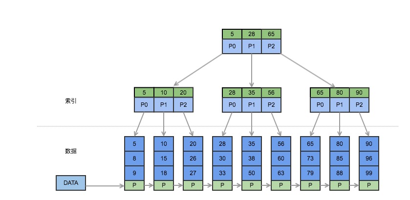- 优势: 它对保存的key 是排序的,如例图所示,通过一个顺序访问数据的指针,就能够方便地顺序列出全部数据,这弥补了Hash 类索引不能够范围查询的缺点。